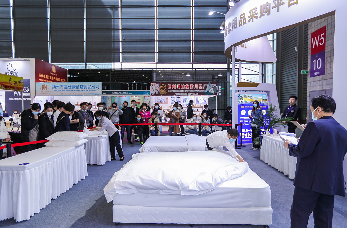 Shanghai International Hospitalitas Design & Supplies Expo - Hotel hospitii Competition - Shanghai International Hospitalitas Design & Supplies Expo. Certamen pro hospitibus deversoriis habetur certatim in lecto faciendo, schedae, culcitris, et cervicalibus constantes, in usu proficiendi ostendentes. Deversorium virgam adiuvat ad artes domesticas permutandas et progressum in deversorium commeatus mercatum impellit.