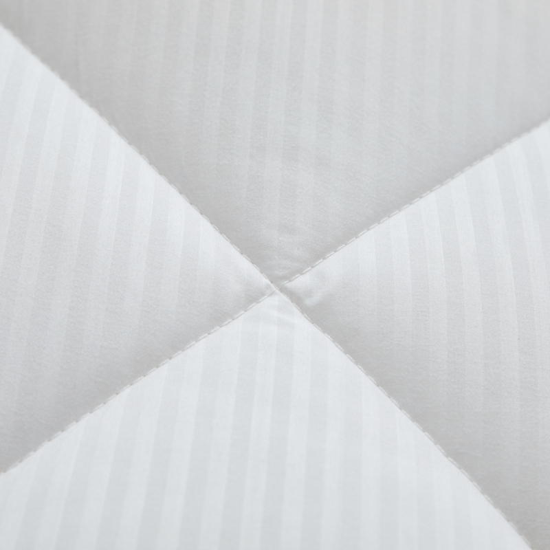 Specialiter designatur pro cubiculis deversorium, hoc microfiber quilt features bombacio premium et mollis, fermentum microfiber implens. Available in magnitudinibus a gemino rege, bombacio premium cum microfibrarum impletione componit. Bombacio spirabilis et tactui mollis est, microfiber autem implens leve et calidum est, praestantem calorem sine mole praebens. Fibrae eius tenues laqueum aeris efficiunt, effectum pulvino similem. Stragula linum comitem 233/300TC habet (multa optiones in promptu sunt), signum notae fabricae qualitatis et vetustatis. Superior stamina computat significat fibrillae bombicis arctius contextae, robur ac mollitiem amplificandae fabricae.